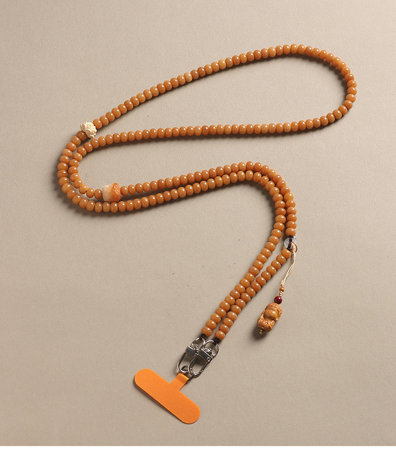 Yellow Bodhi Crossbody Phone Strap Natural Bodhi Seed Beaded Phone Chain, 8 × 10 mm Beads, 120 cm / 47 inch
